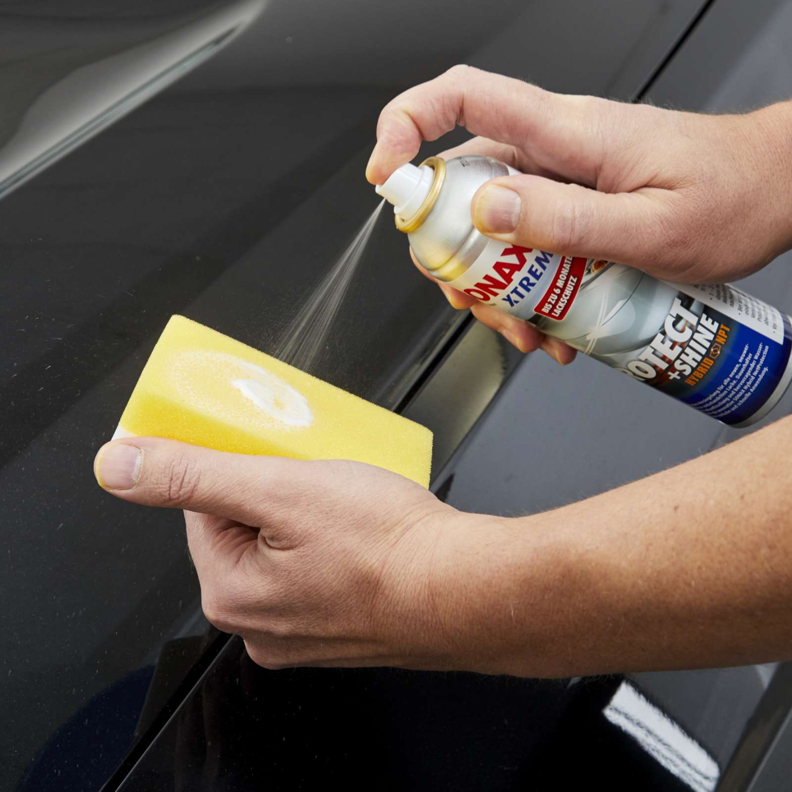 Wachsfreie Hochglanz-Versiegelung für alle neuen, neuwertigen und mit Politur vorbehandelten Lacke. SONAX XTREME Protect+Shine überzieht den Lack mit einer extrem stabilen und glänzenden Schutzschicht (SONAX Hybrid NetProtection Technology ), die für dauerhaften Schutz, intensive Farbauffrischung und hervorragenden Wasser-Abperl- Effekt sorgt. Das Anhaften von Staub und Schmutz wird reduziert, der Glanz kehrt automatisch nach jeder Wäsche zurück. Reicht für 3 - 4 einfache, superschnelle und kinderleichte Anwendungen - ohne Vorbehandlung, ohne Trocknungszeiten. Set inklusive ApplikationsSchwamm und MicrofaserTuch.