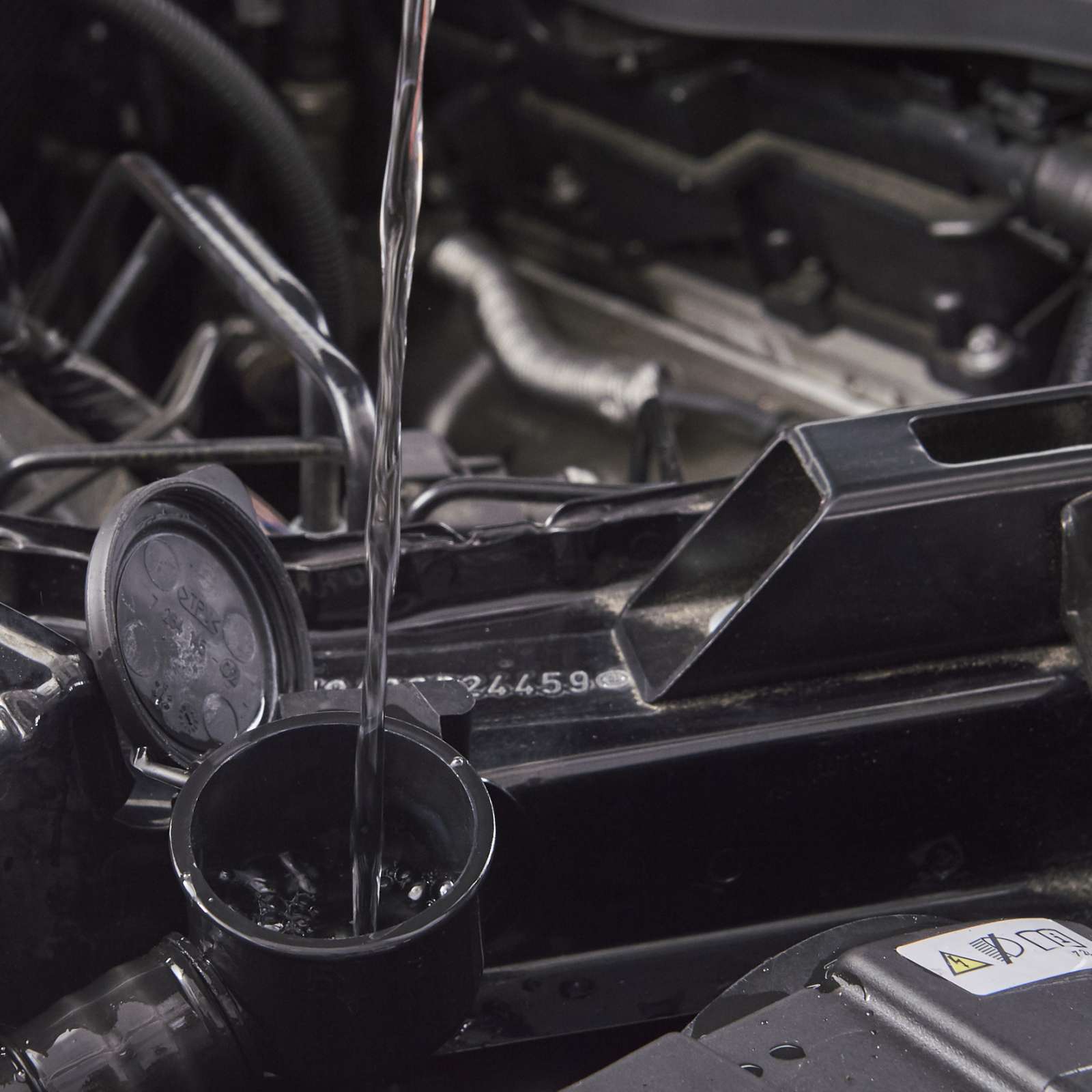 - Verschlusskappe ganz abschrauben und den Inhalt des Dosierkopfes zum Wasser in den Tank der Scheibenwaschanlage zugeben.