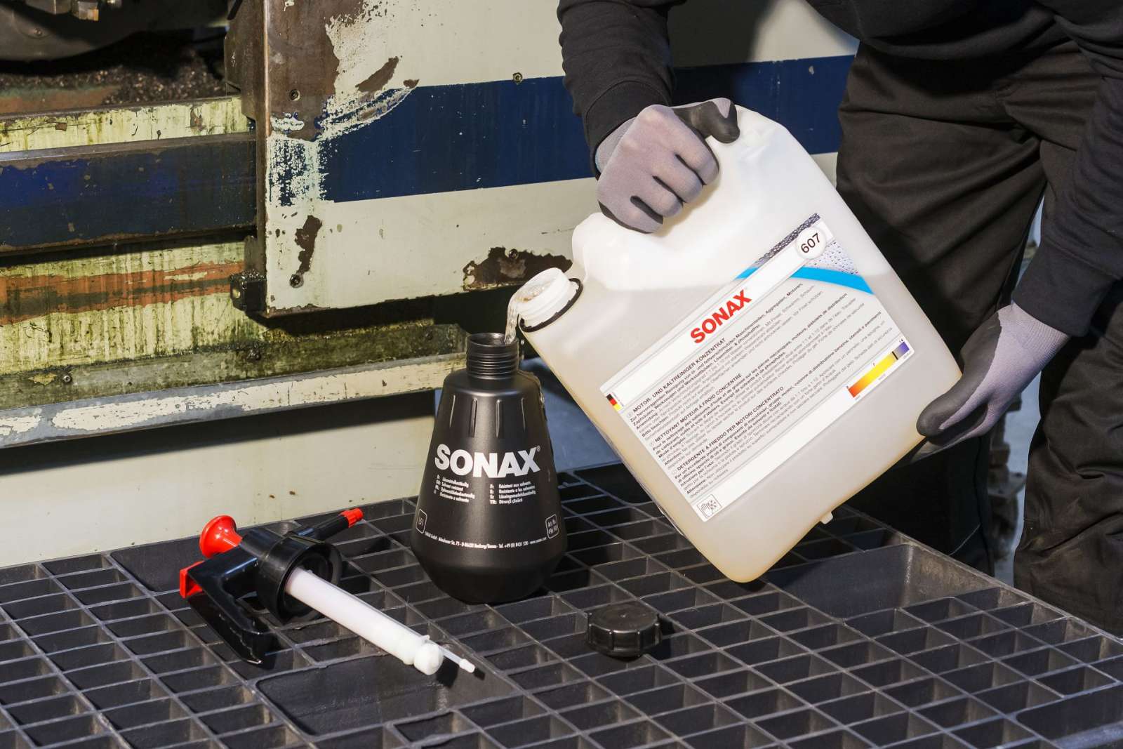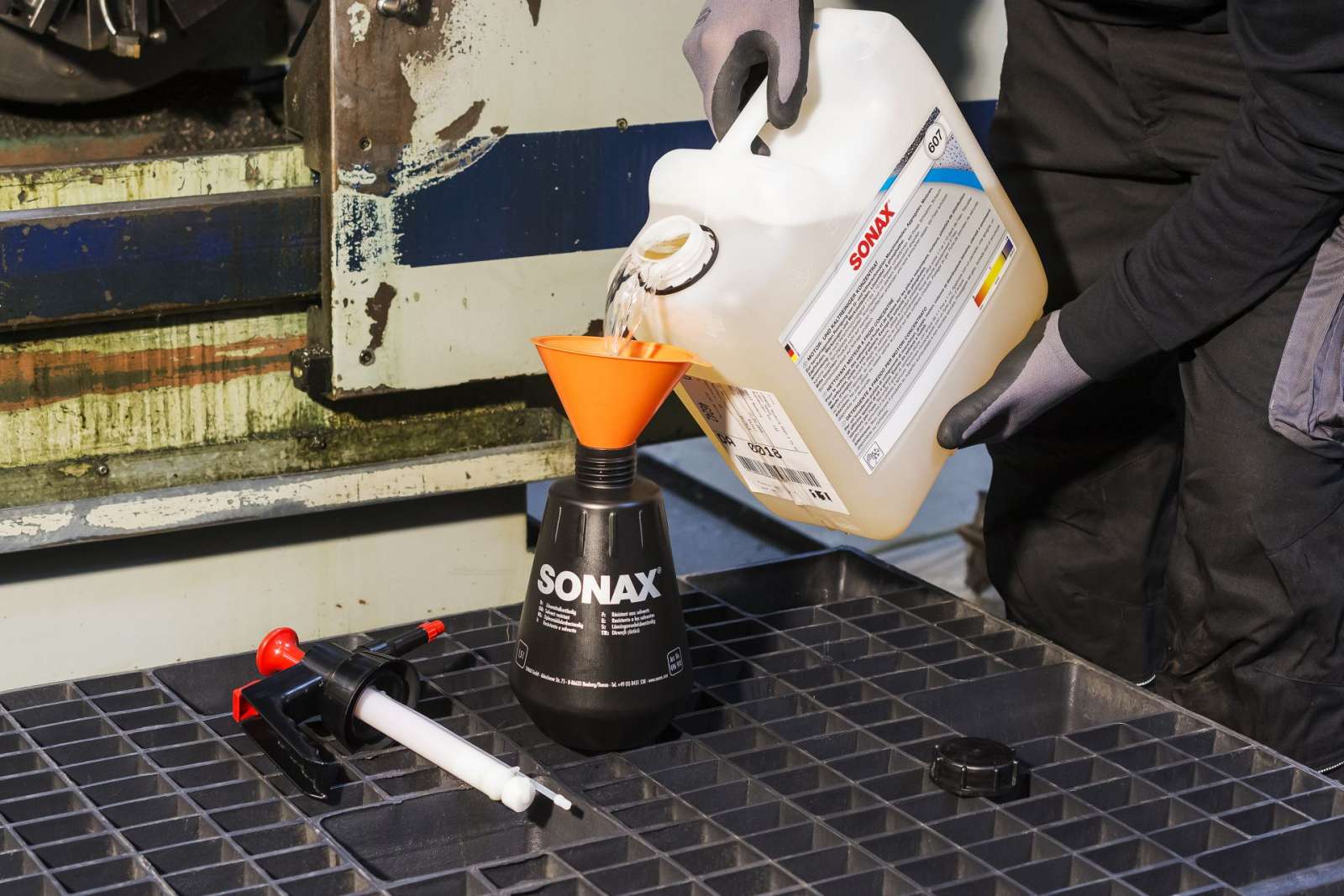 - Großgebinde mit SONAX DruckpumpZerstäuber für saure und alkalische Produkte verarbeiten
