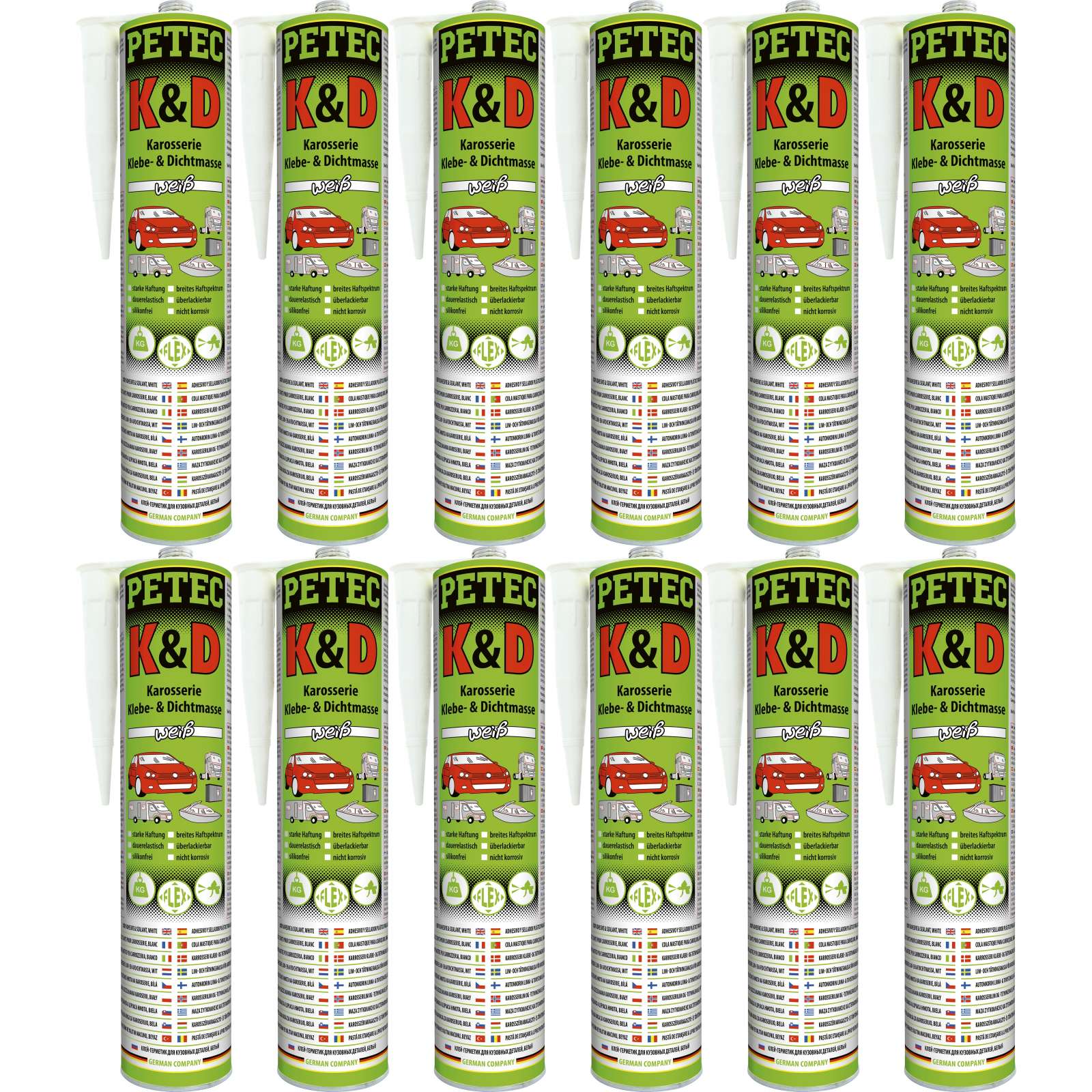 Petec 94530 - K&D Karosserie Klebe-&Dichtmasse weiß 310 ml Kartusche - VPE Set - 12 Stück