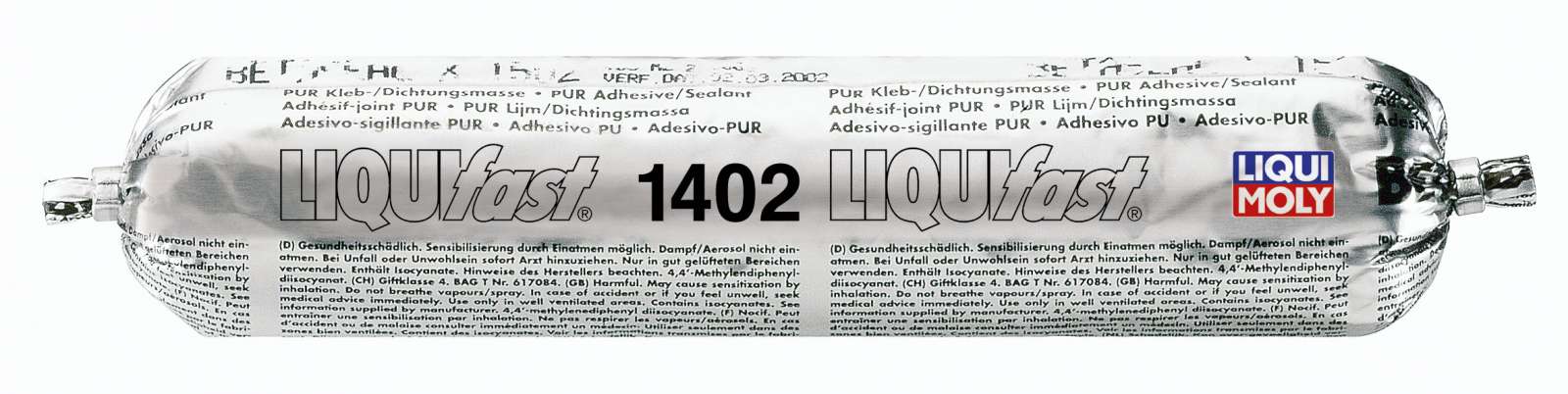 • Liquifast 1402 ist ein 1-komponentiger, kalt zu verarbeitender, feuchtigkeitshärtender, Klebstoff zur Direkteinglasungsdichtstoff von Fahrzeugscheiben im Reparaturfall