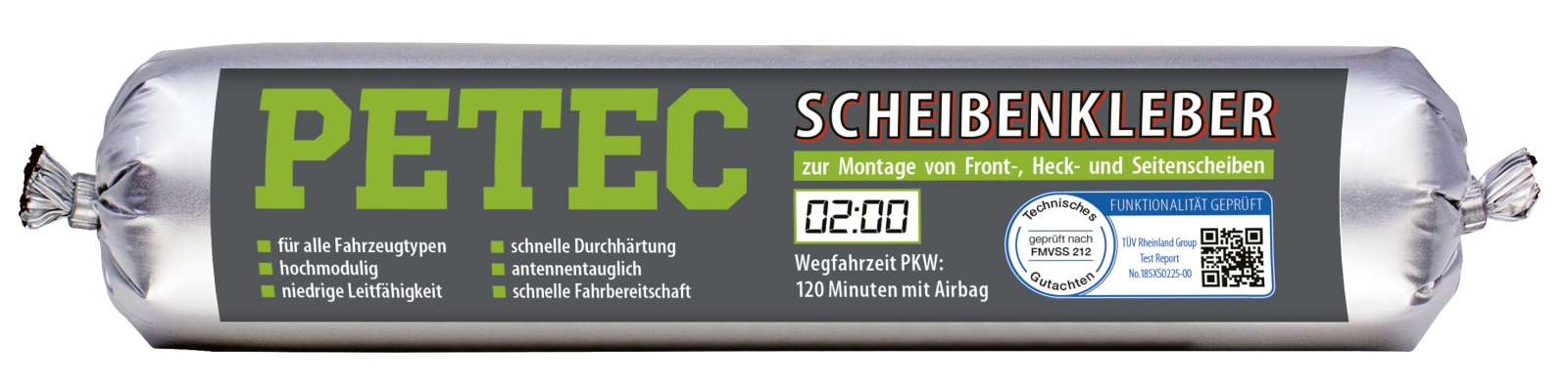 • Schnellhärtender, hochmoduliger Einkomponenten-Scheibenklebstoff auf Polyurethanbasis zur Montage von Front-, Heck- und Seitenscheiben.