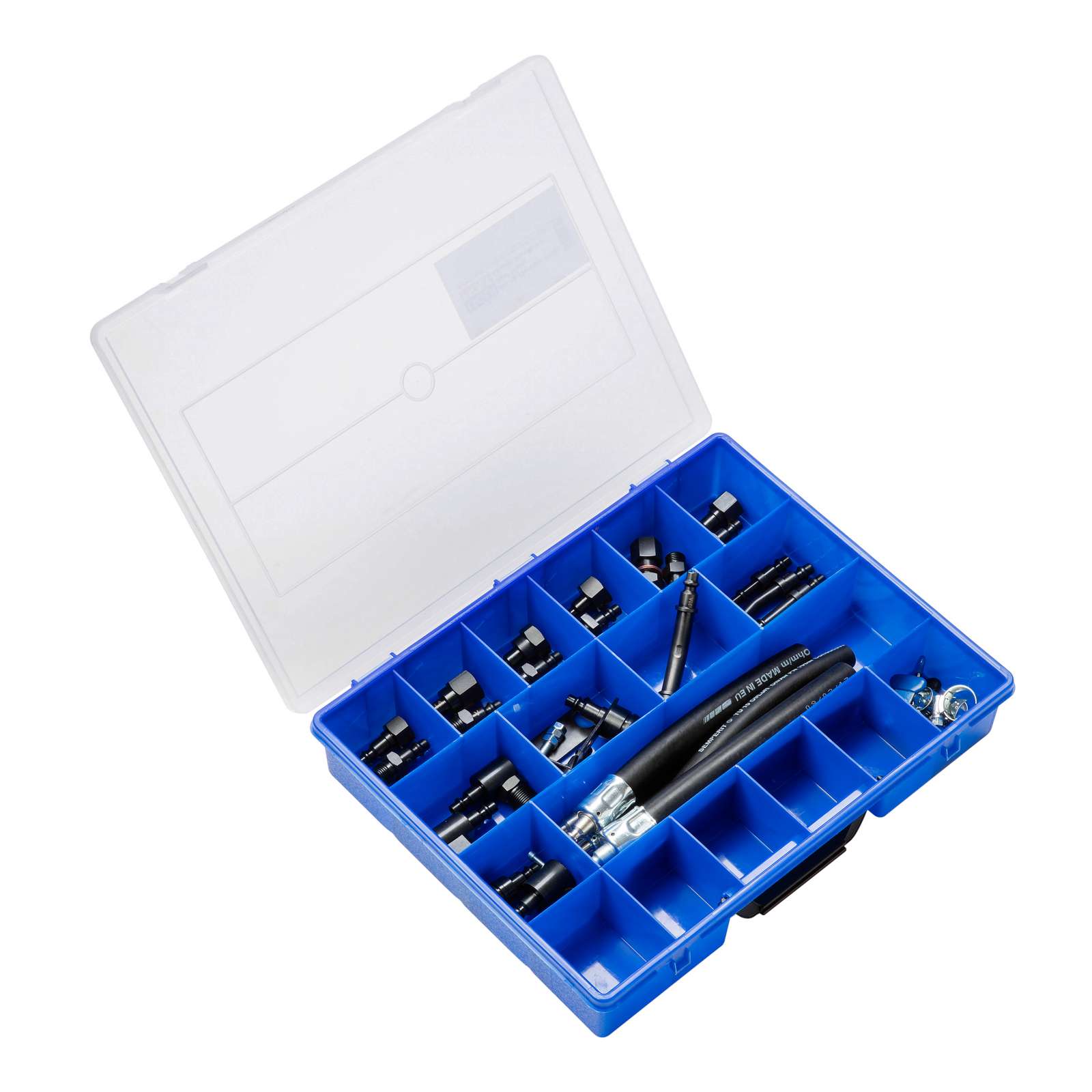 • 31-teiliger Adaptersatz mit Parker H2C Anschlüssen, der unter anderem den Gear Tronic-Adapter BMW07/VAG13 (Artikel-Nummer 29017) beinhaltet