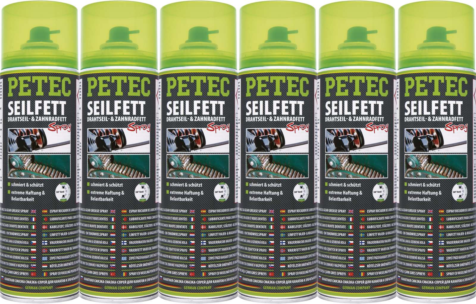 Petec 71650 - Seilfett, Drahtseil- & Zahnradfett Spray 500 ml - VPE Set - 6 Stück